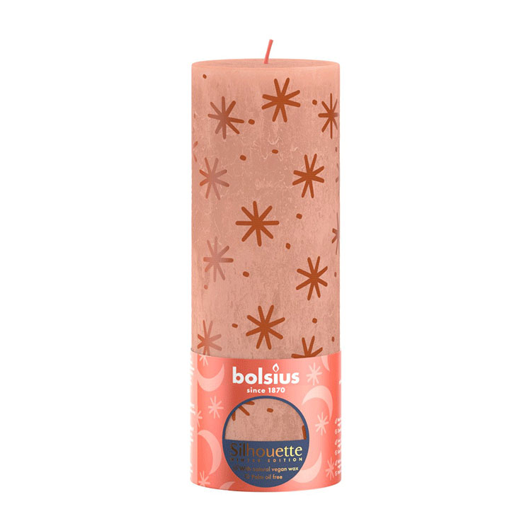 Met deze silhouette rustiekkaars 190 & 68 Creamy Caramel geniet u van warmte en licht tijdens de feestdagen en op winterse avonden thuis! Met de Bolsius Winter Edition kaars uit de Silhouette-collectie in natuurlijk karamel met prachtige print van sneeuwvlokjes brengt u uw huis direct in een feestelijke sfeer. De kaars is 19cm hoog en 6,8cm breed en brandt tot wel 77 uur.